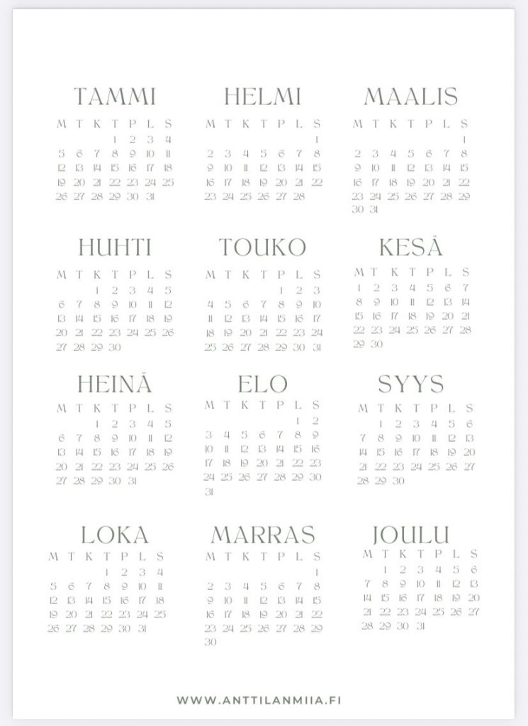 - Vuosikalenteri: tärkeiden päivämäärien ja tapahtumien suunnitteluun