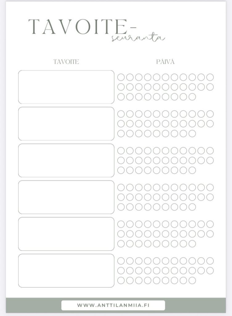 - Tavoitelista ja tavoiteseuranta: tue unelmiesi saavuttamista askel kerrallaan