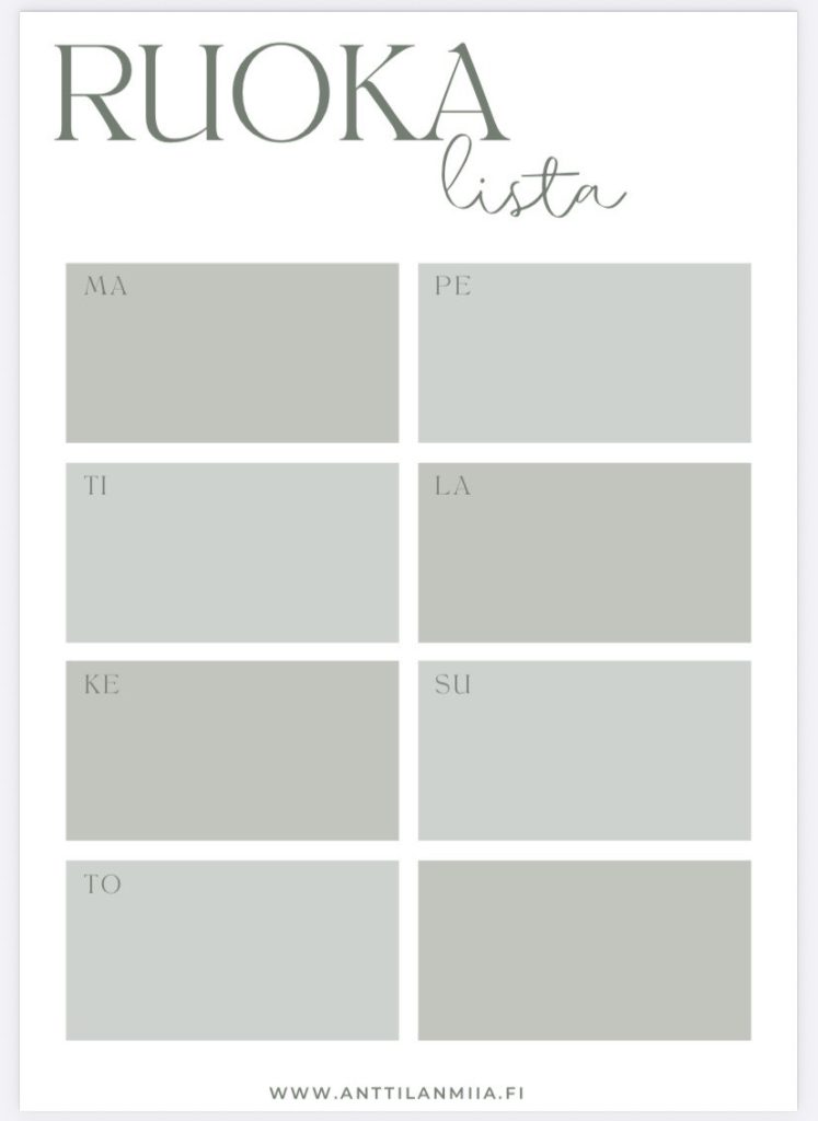 Viikko-ohjelma: ruokalista, siivouslista ja tehtävälista pitävät viikon järjestyksessä