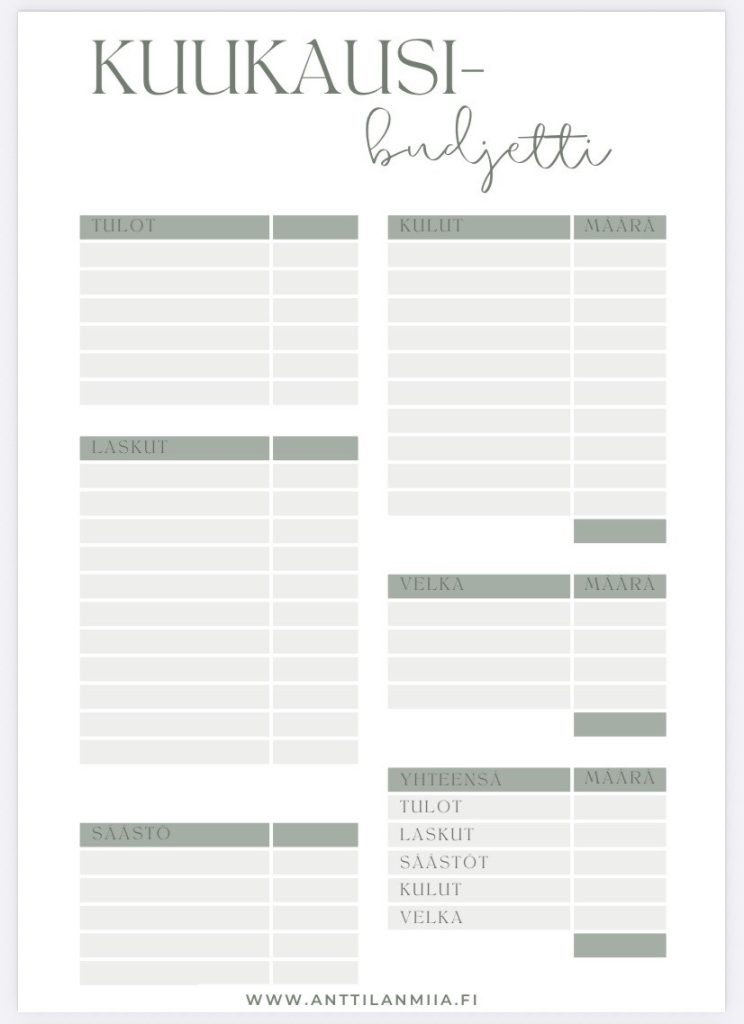 Budjetointi- työkirja (PDF)